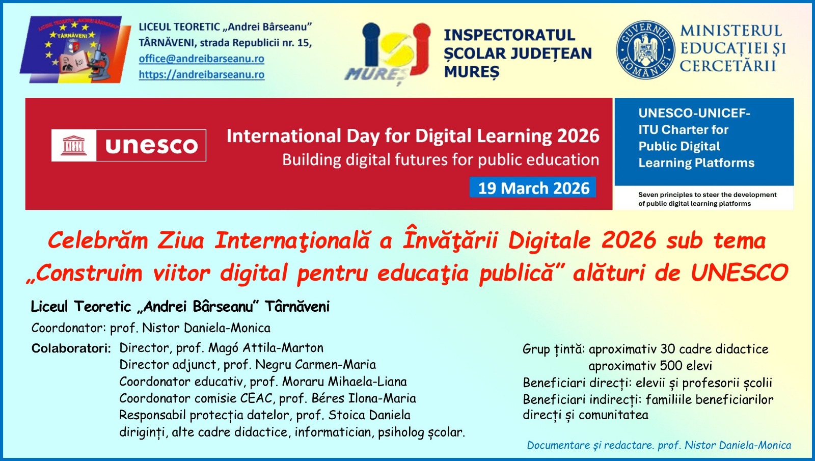 Ziua Internațională a Învățării Digitale, desemnată de statele membre UNESCO în 2023, este o ocazie de a celebra și de a împărtăși informații despre numeroasele moduri în care școlile, profesorii, elevii și familiile utilizează tehnologiile digitale pentru a îmbunătăți educația în conformitate cu obiectivele naționale și internaționale, luând în același timp măsuri pentru a atenua riscurile și provocările considerabile pe care le introduc aceste tehnologii.